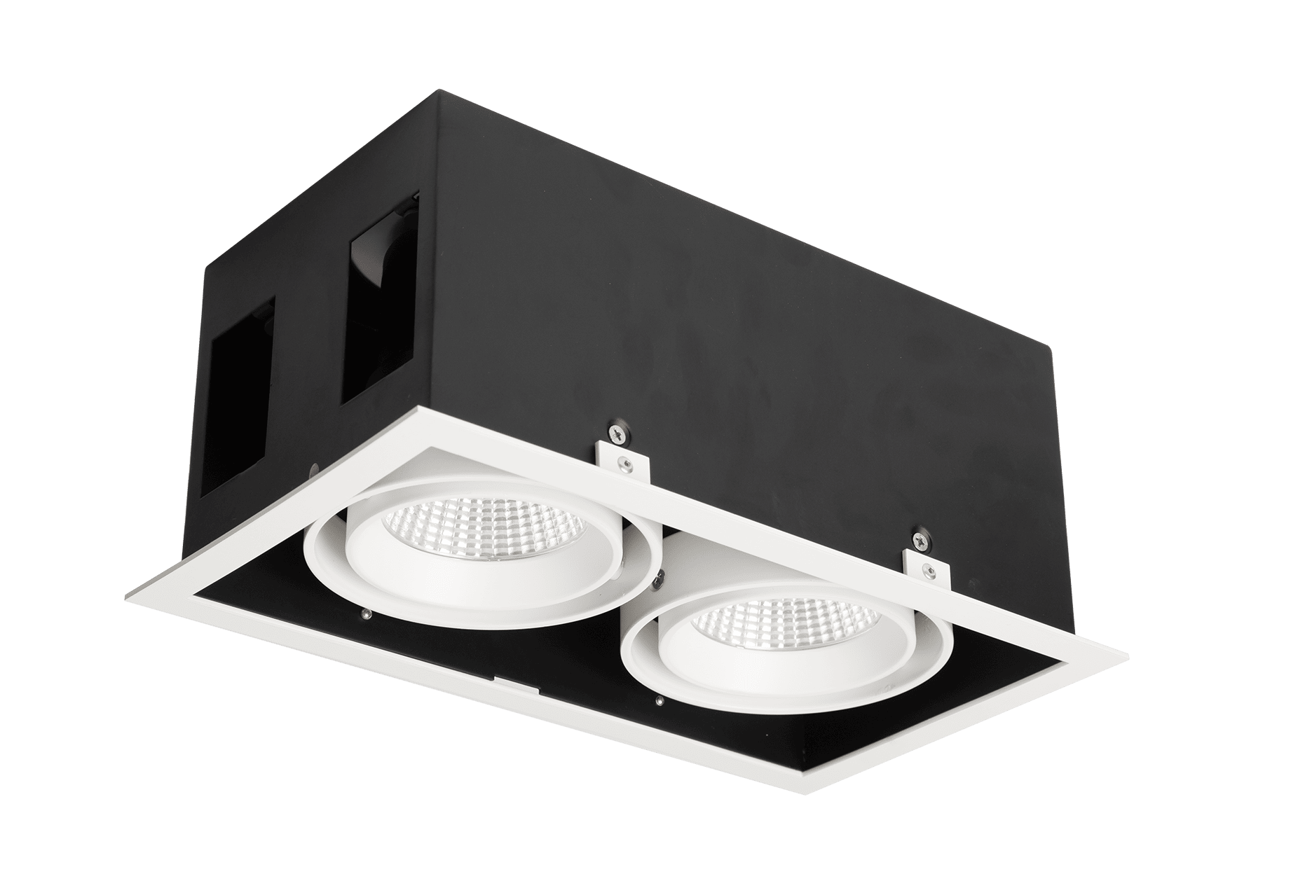 RECESSED ADJUSTABLE DOWNLIGHT Cat No. : DCT-9232 Dimension : 299x170xH130 mm Cutting size : 275x155 mm Power : 2xLED COB 25W