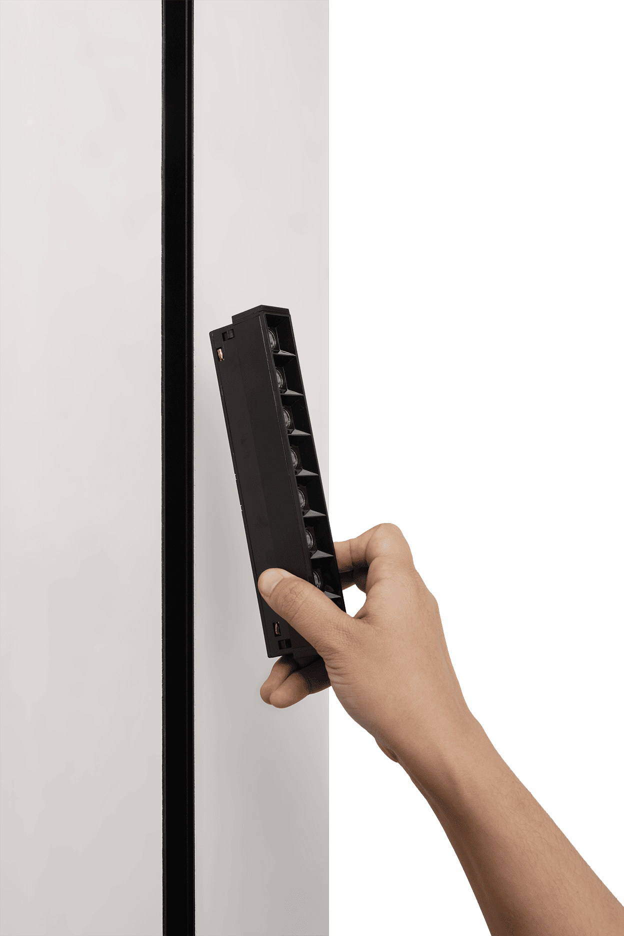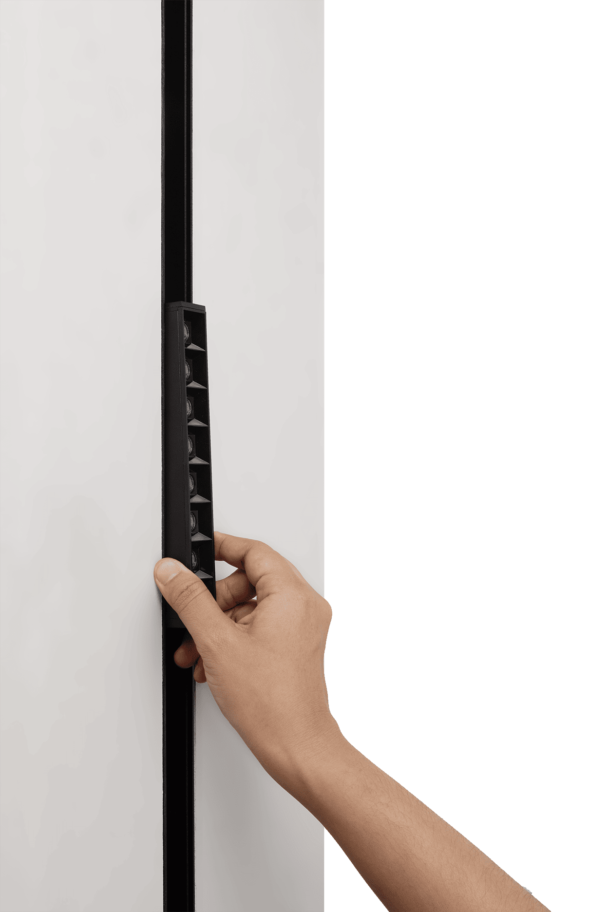 Magnetic Linear Spotlight Cat No. : MV-MGT-1001C1-35D95-8 Dimension : W22.5 x L171 x H42 mm. LED COB 8W CRI>95 Beam angle 35°